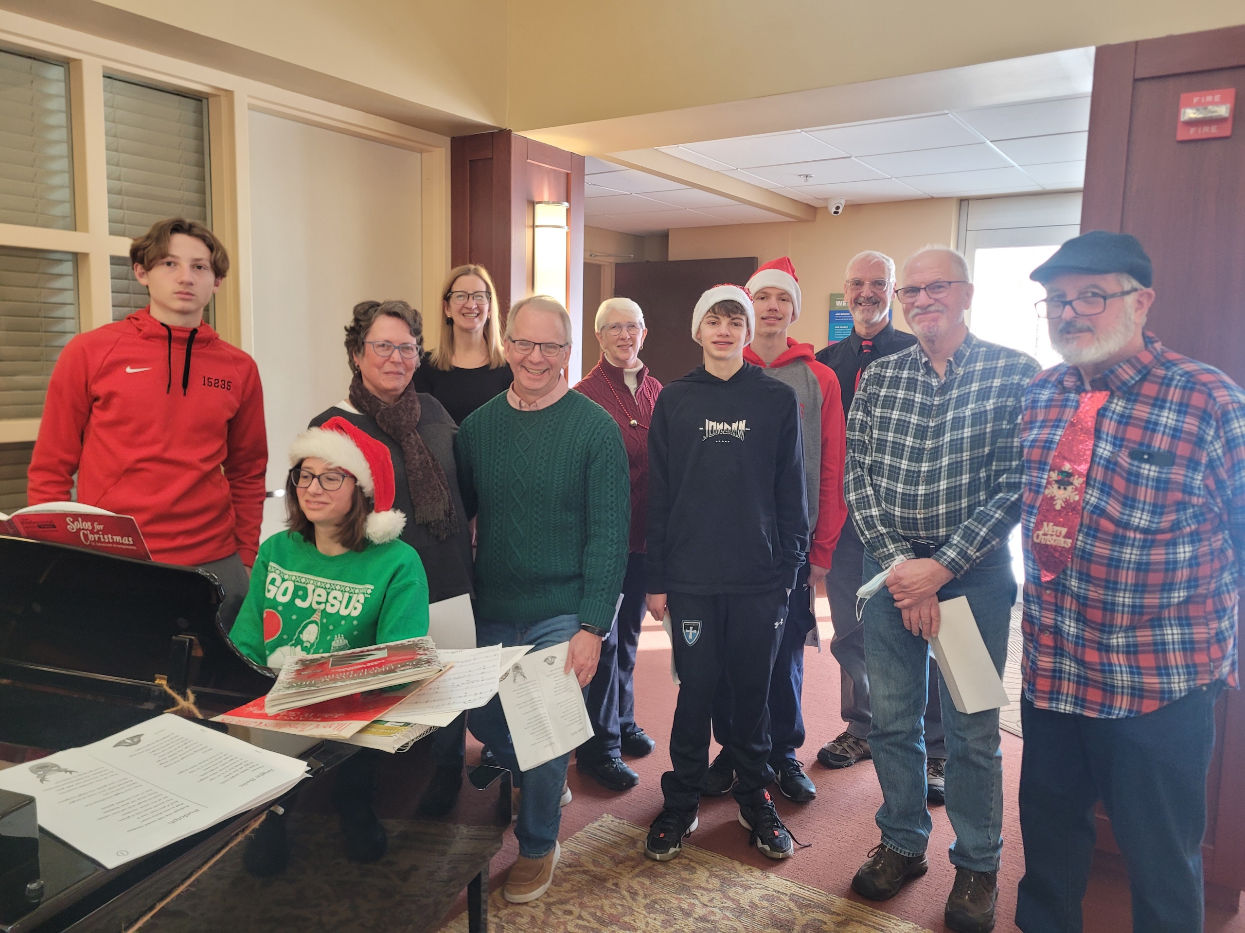 group posing at Christmas time